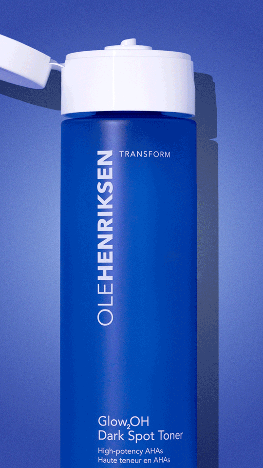 Minneapolis-based commercial product, skincare, and CPG photographer Emily Schadow photographed a Blue bottle of OLEHENRIKSEN Glow2OH Dark Spot Toner .